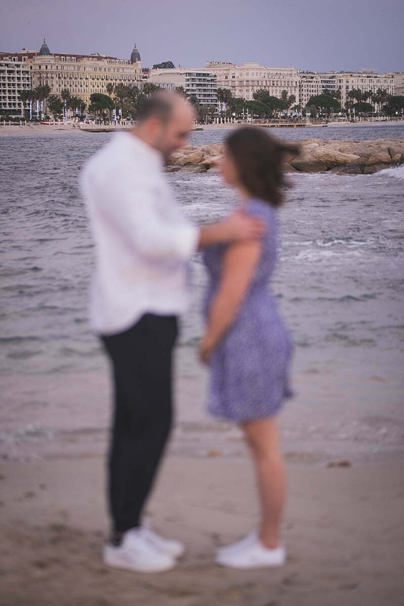 Some proposals unfold under perfect sunshine. Others under wild skies — and somehow, those are the ones you never forget. This Cannes beach proposal was one of those rare, emotional stories where everything — the weather, the light, even the wind — conspired to make the moment unforgettable.