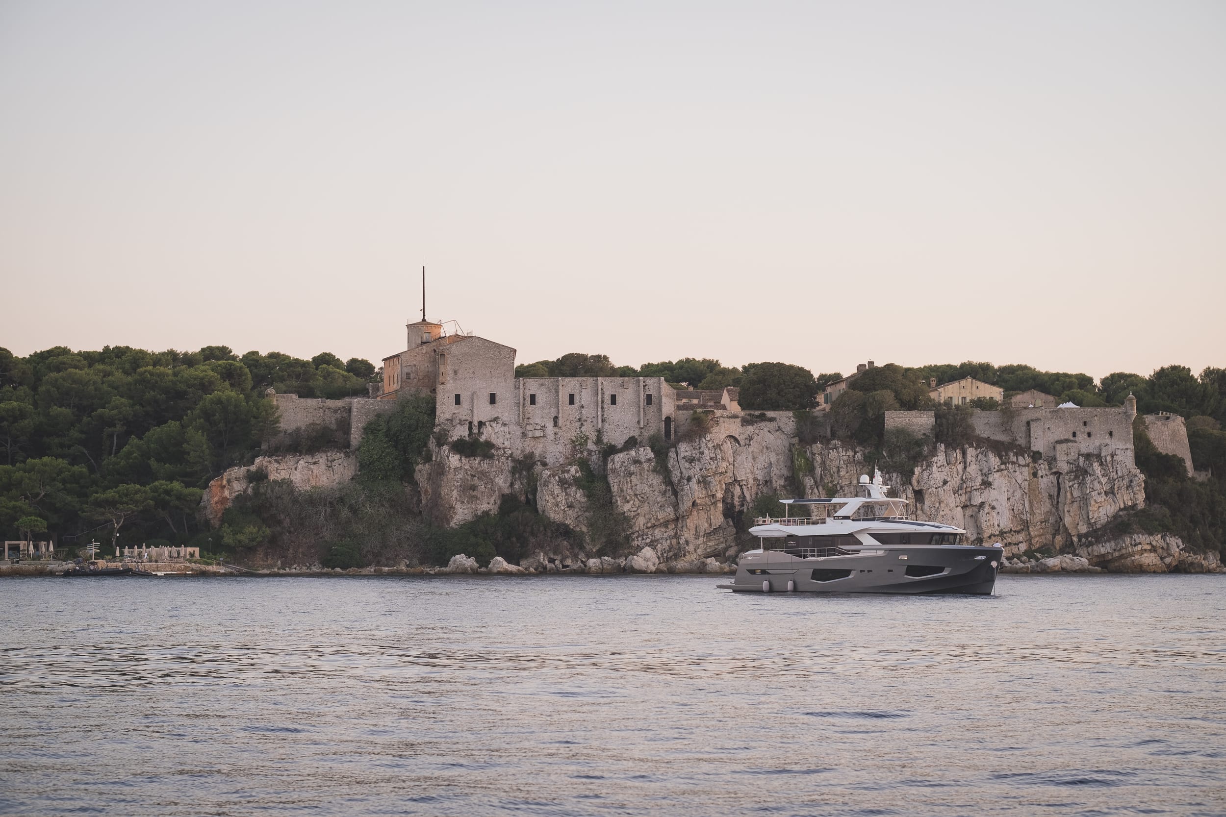 Soon, the city’s sounds faded away, replaced by the rhythm of the waves. The yacht glided toward the Lérins Islands, a pair of gems floating just off the coast — Saint-Honorat and Saint-Marguerite. The water was so clear it mirrored the sky, and the light of the golden hour reflected like liquid gold across the calm sea.