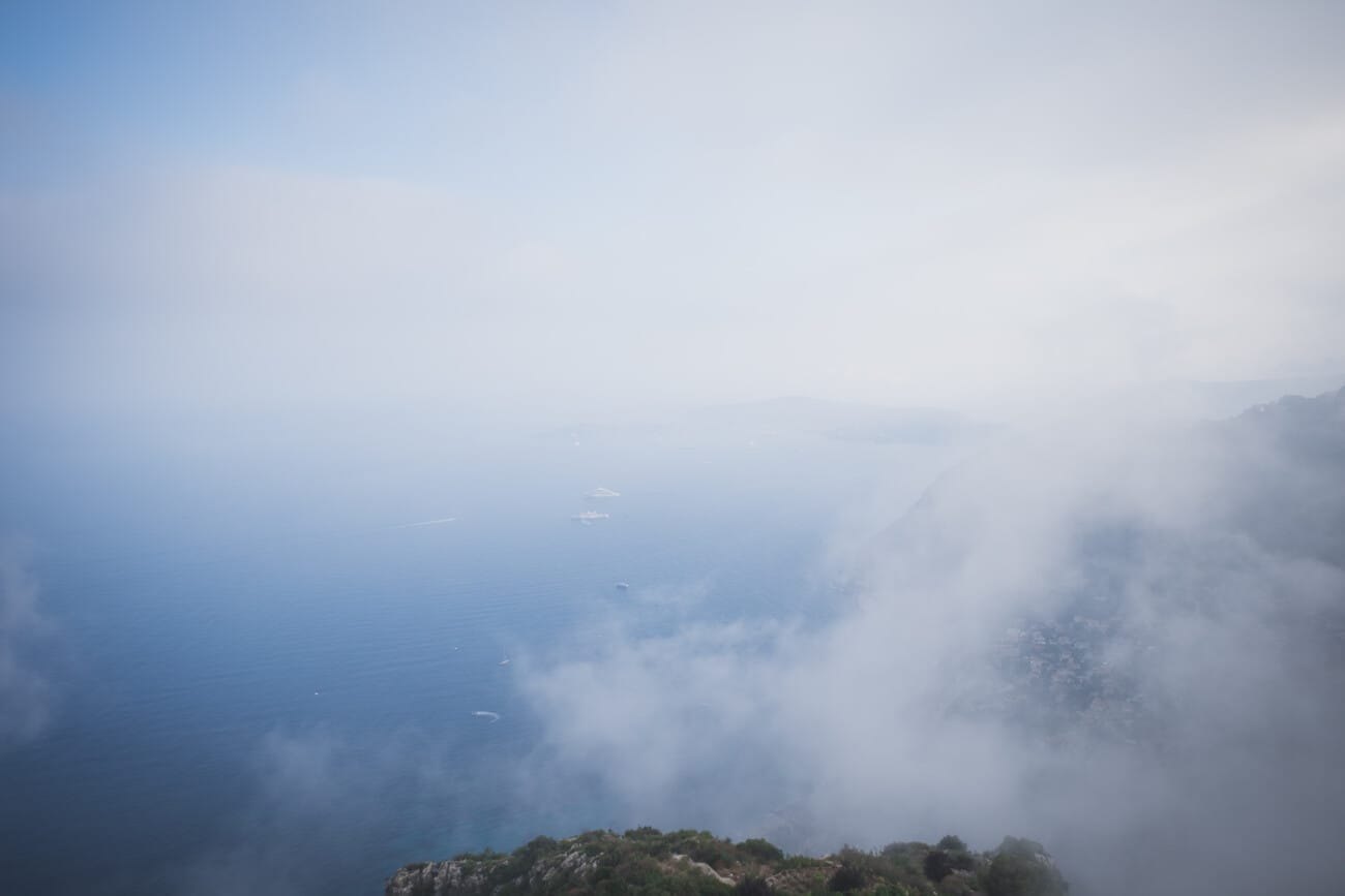 Eze was lost in the ethereal cloud, creating a romantic and dreamlike atmosphere. My team meticulously set up the flowers on the presidential suite terrace, while the mist was so dense we couldn’t even see the coastline.