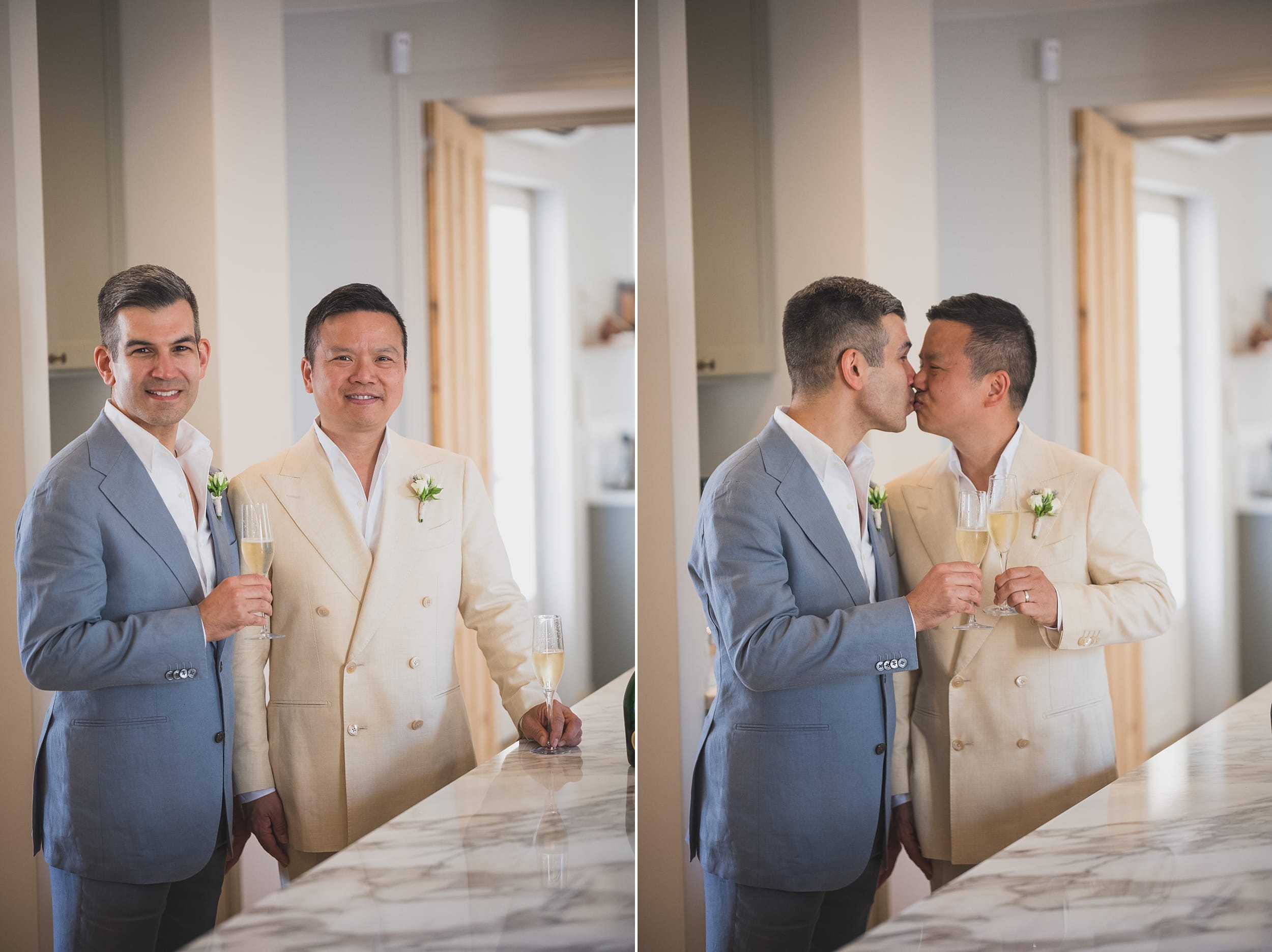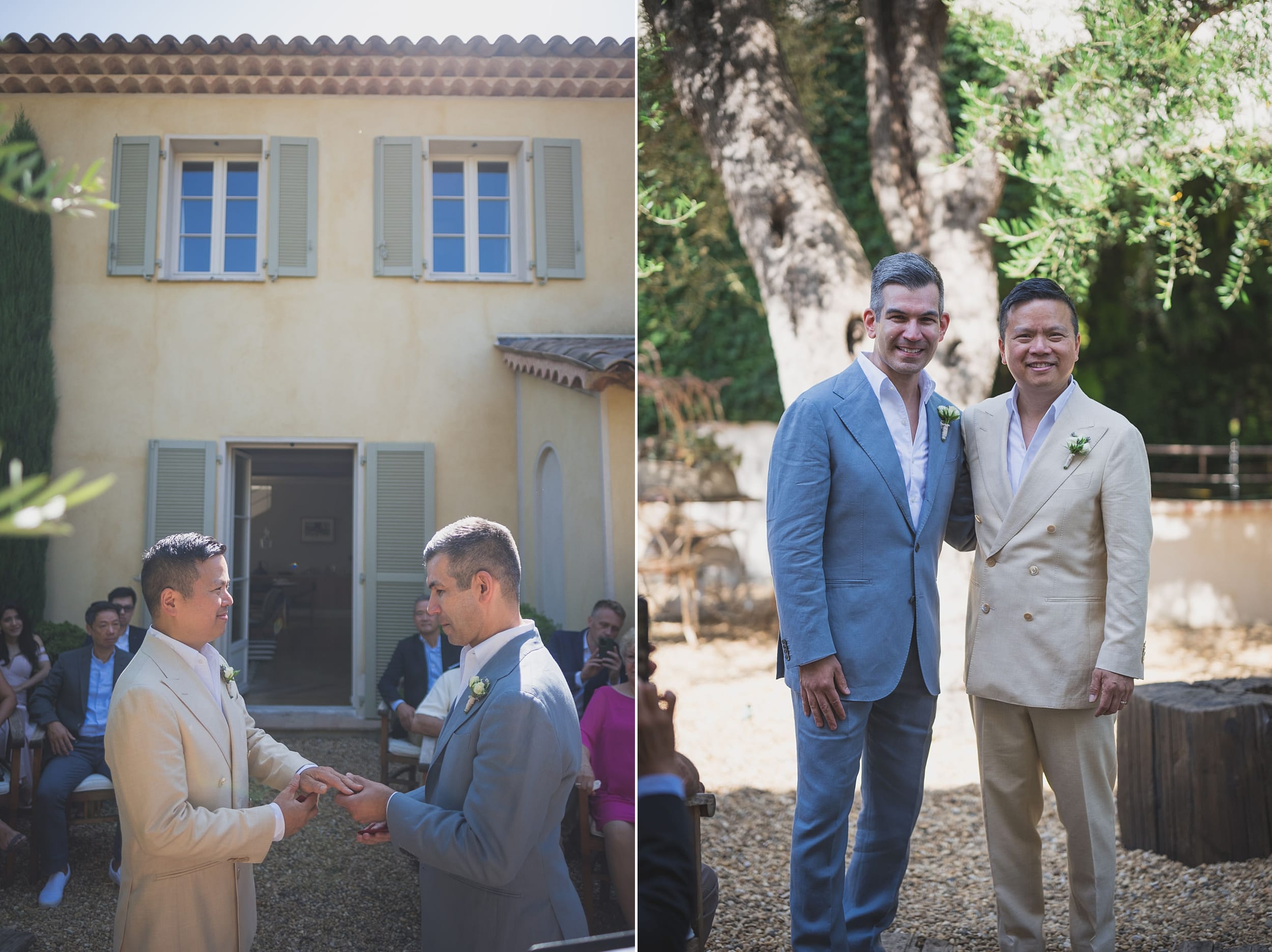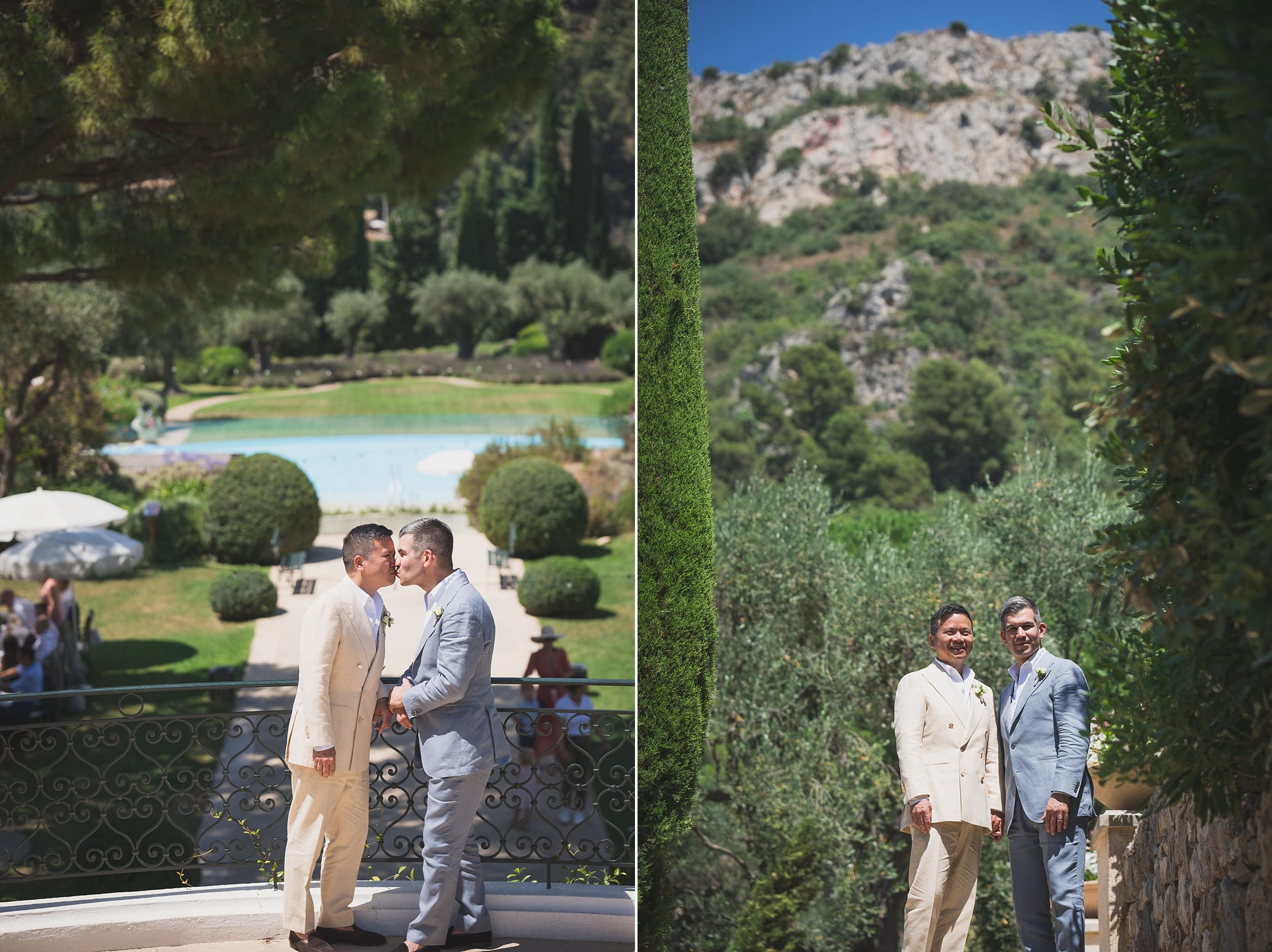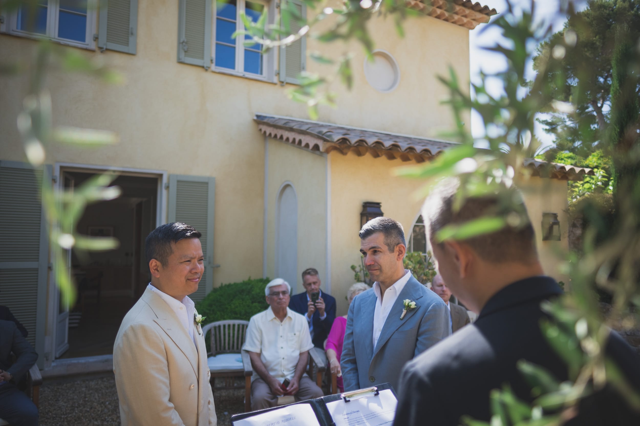 The French Riviera became the perfect destination for this same-sex couple to celebrate their love through an intimate elopement ceremony with their nearest family members and friends. The couple chose to spend their special day in a way that honored their relationship through romance and personal touches and natural beauty. The first part of their day started with a meaningful ceremony which took place in the beautiful garden of their private villa while their staff worked to create a perfect atmosphere.