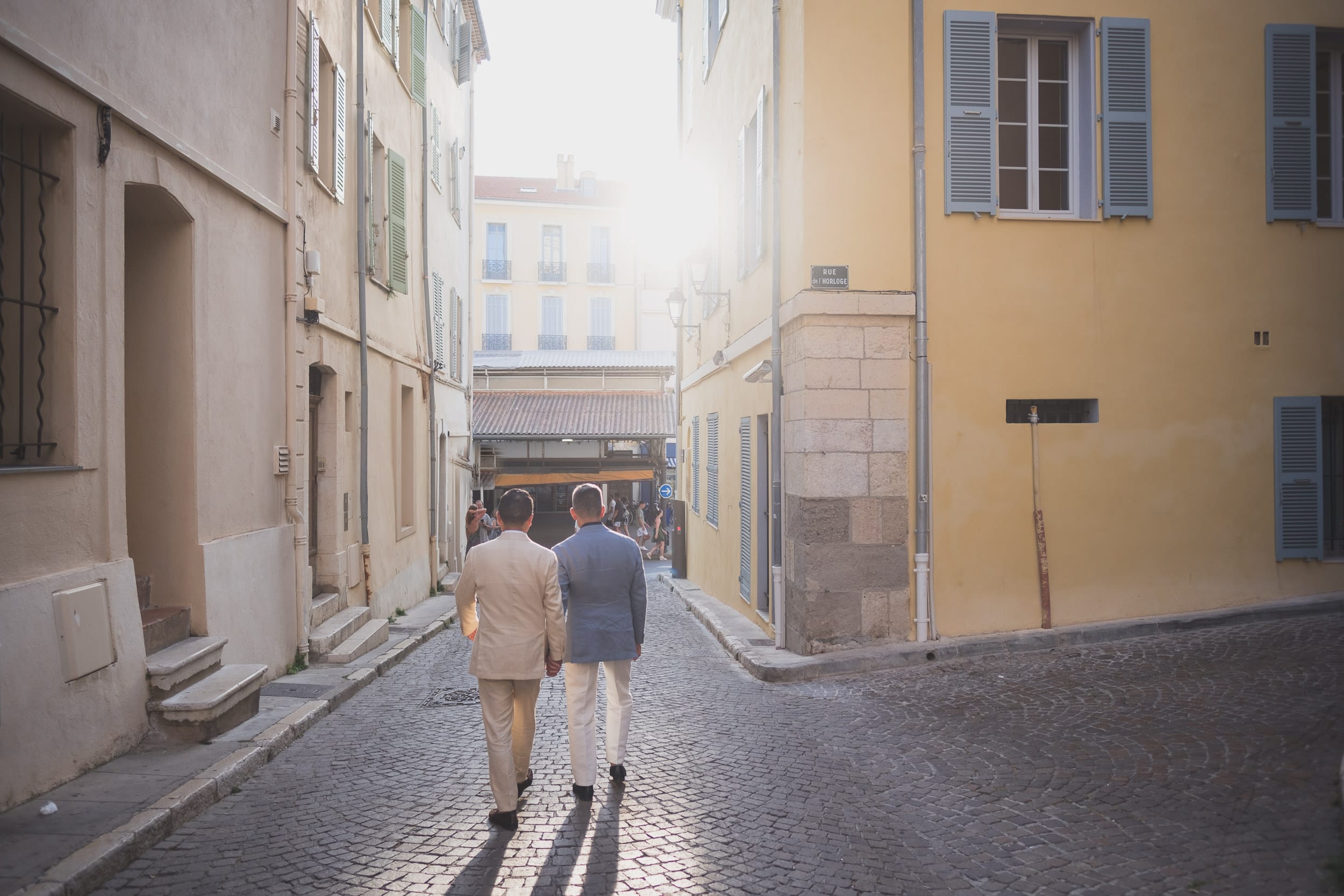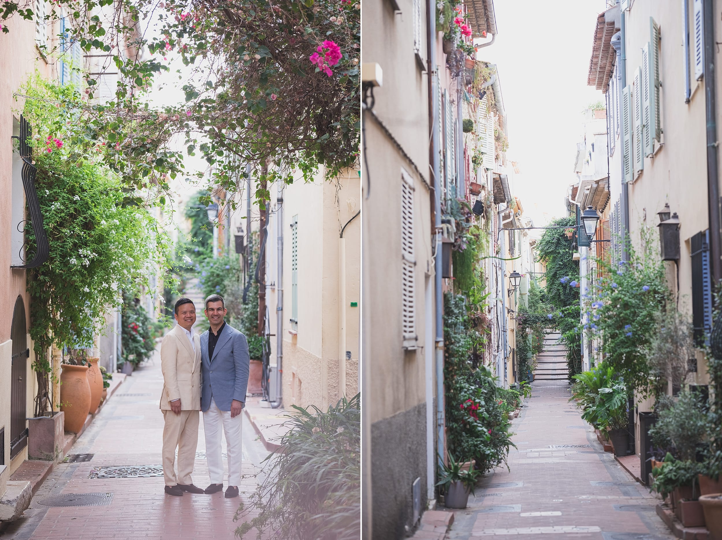 The couple moved to the seaside and Antibes Old Town narrow streets to take their couple’s portraits as the sun started to set. The French Riviera provided a breathtaking setting which created unforgettable memories during their elopement celebration because the day felt warm and intimate while celebrating their love and commitment.