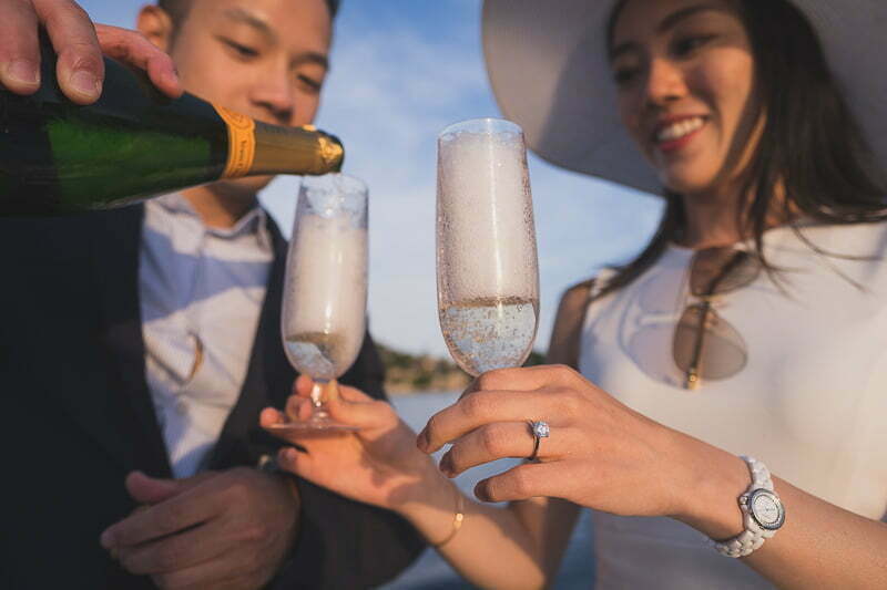 A yacht proposal here isn’t just about luxury; it’s about intimacy. The privacy of the open sea, the rhythm of the waves, and the ever-changing light create the perfect conditions for something meaningful. From the deck, the villas look smaller, the world feels far away, and the only thing that matters is the person standing beside you.