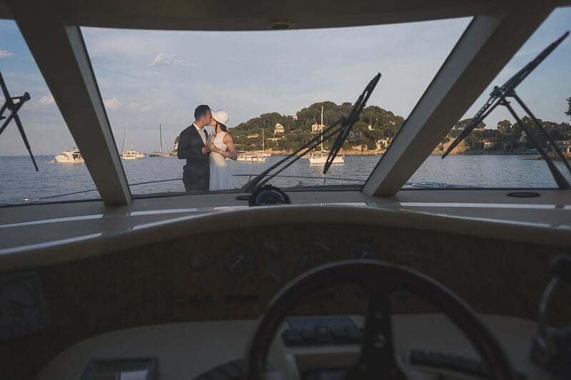 For the next half hour, the light was simply perfect. We captured the most beautiful portraits — candid laughter, soft embraces, and the happiness that only comes from moments like this. The water around the yacht sparkled as the sun lowered, creating reflections that danced across their faces. It was a dream to photograph — a balance of emotion, light, and the timeless beauty of the Riviera coastline.