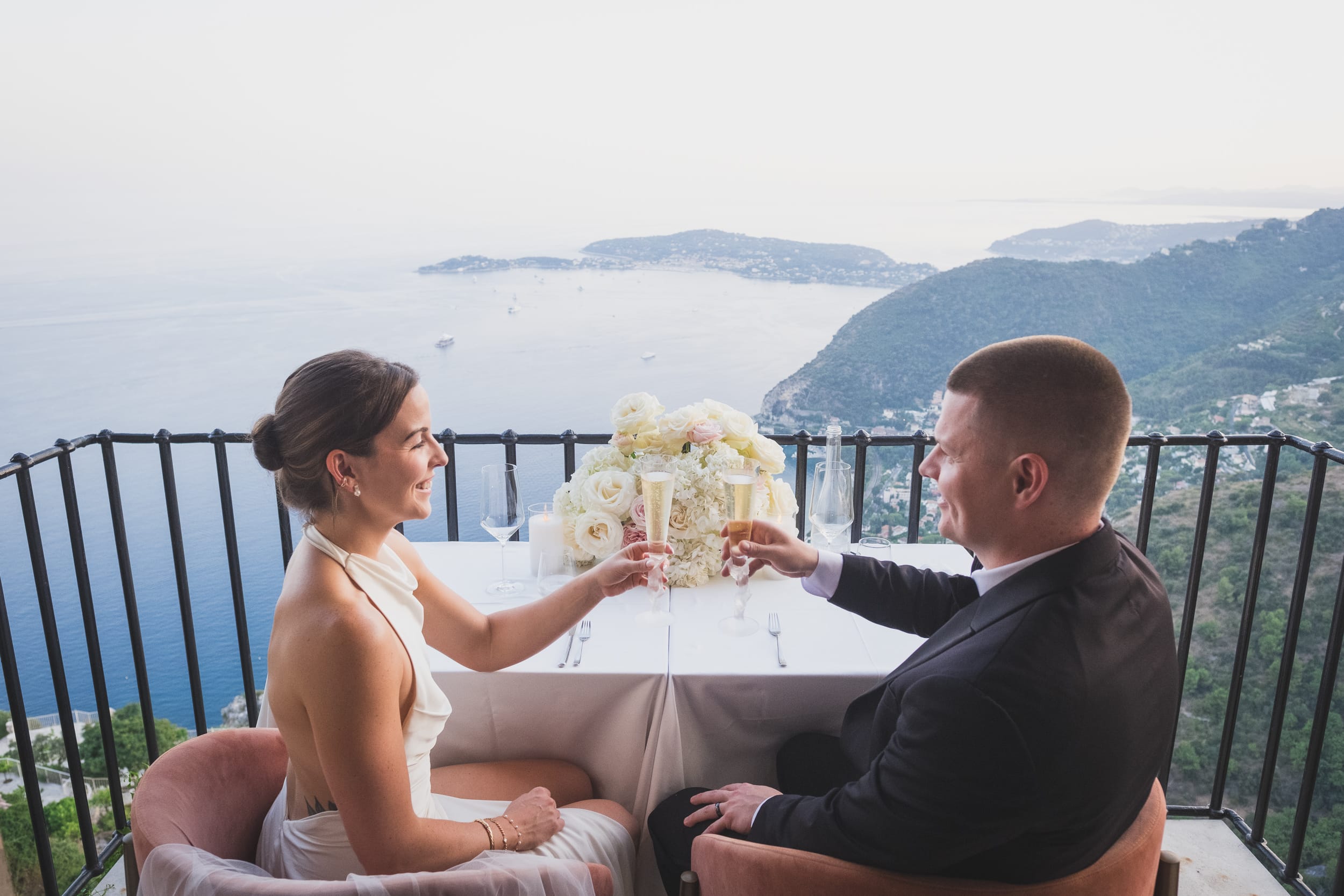 This is what makes Èze so extraordinary — every moment here feels cinematic, intimate, and utterly romantic. As a French Riviera elopement photographer and planner, we always seek to create experiences that feel genuine and deeply personal. The rhythm of the village slows everything down, allowing couples to be fully present, to live the emotion rather than rush through it. From the clinking of champagne glasses to the scent of jasmine drifting through the air, every detail whispers romance.