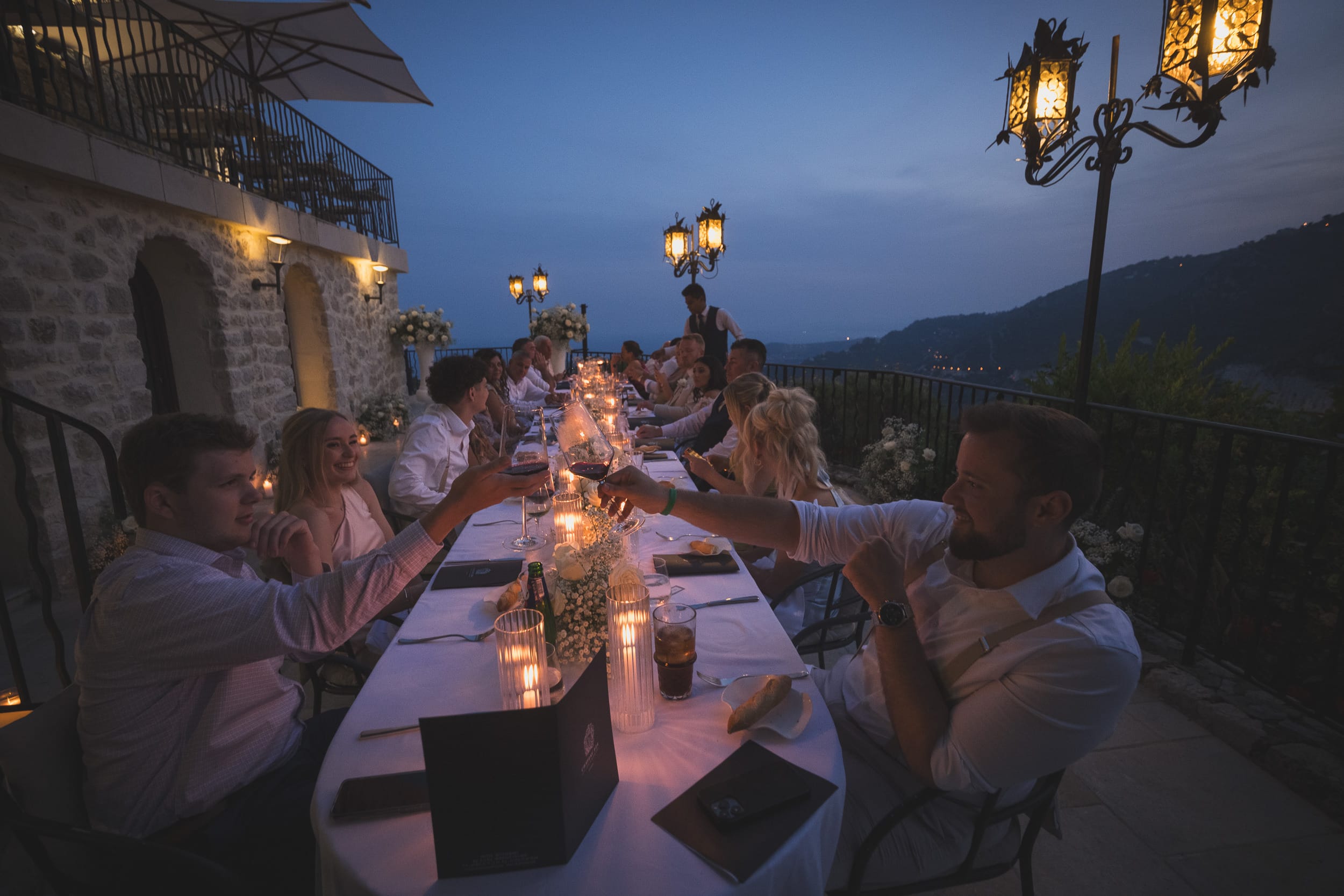 Indulge yourselves and your guests with an amazing dinner from the 1-star Michelin restaurant at Chateau Eza. It’s a fantastic way to end the day, savoring exquisite cuisine in a luxurious setting overlooking the French Riviera. This culinary experience adds a touch of elegance and sophistication to your celebrations before the festivities continue into the night.